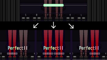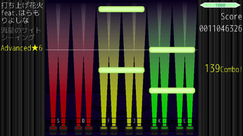 In the background, there is a spotlight for each key. The color of the spotlight switches the lane of the key. If multiple keys are the same lane, the note coming there can be hit for any key of them. So, there are various ways to hit the notes.
